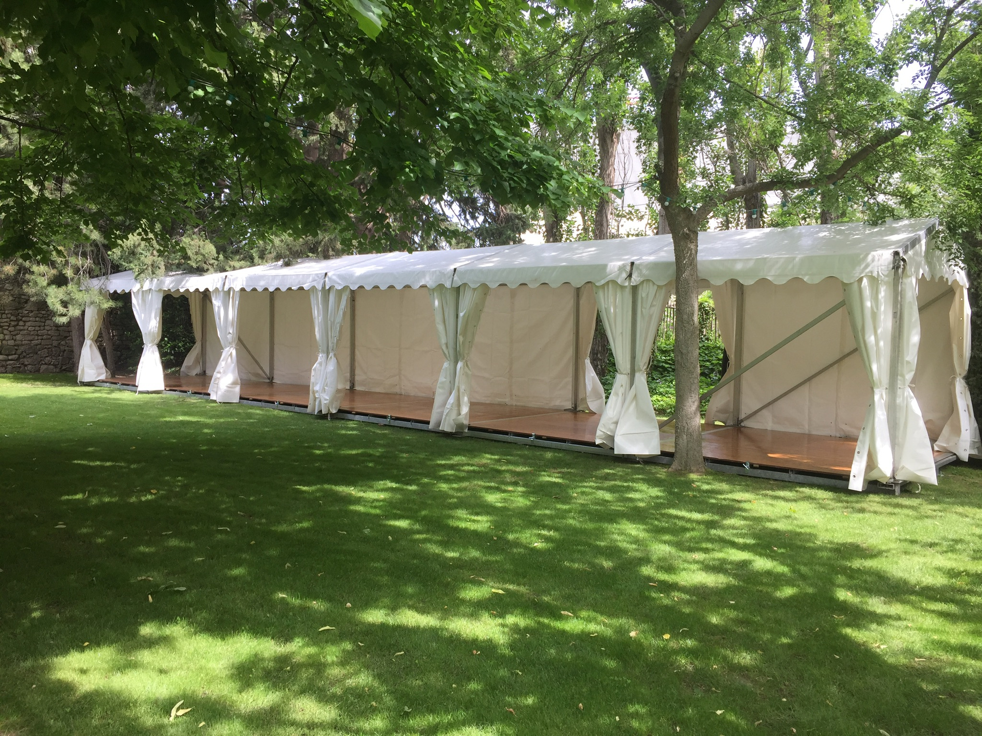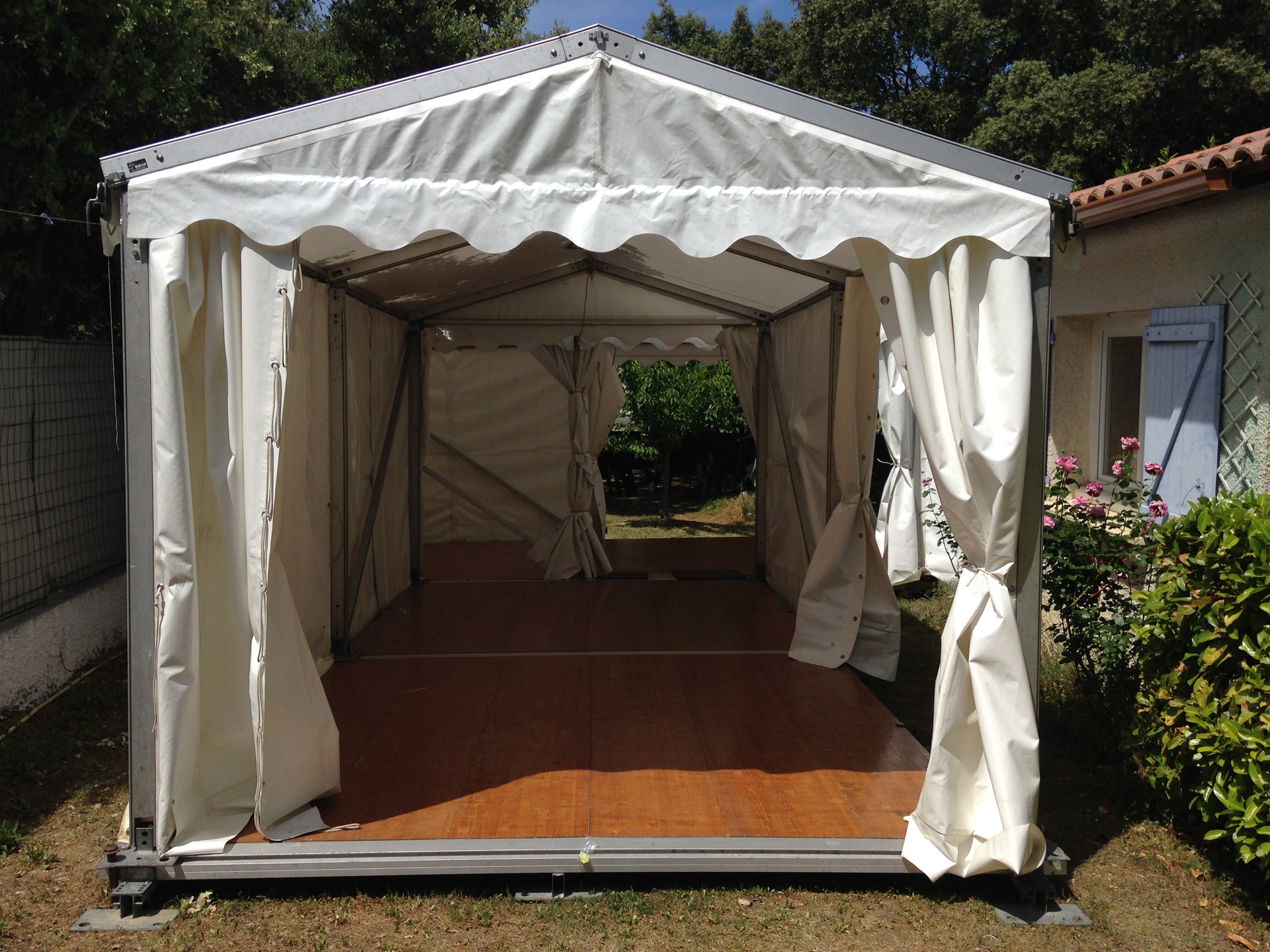La plus petite largeur de structure est disponible en 3m de large, la surface de ce chapiteau est ajustable à partir de 18m2 (3m x 6m) jusqu'à 99m2 (3mx33m). Ce chapiteau est parfaitement adaptée aux petits espaces pour abriter un cocktail, un salon, un espace traiteur, des stands... sur Montpellier et sa région, l'entoilage en PVC est résistant aux intempéries, les rideaux latéraux sont coulissants et disponibles en 3 finitions: blanc, fenêtres et transparents.