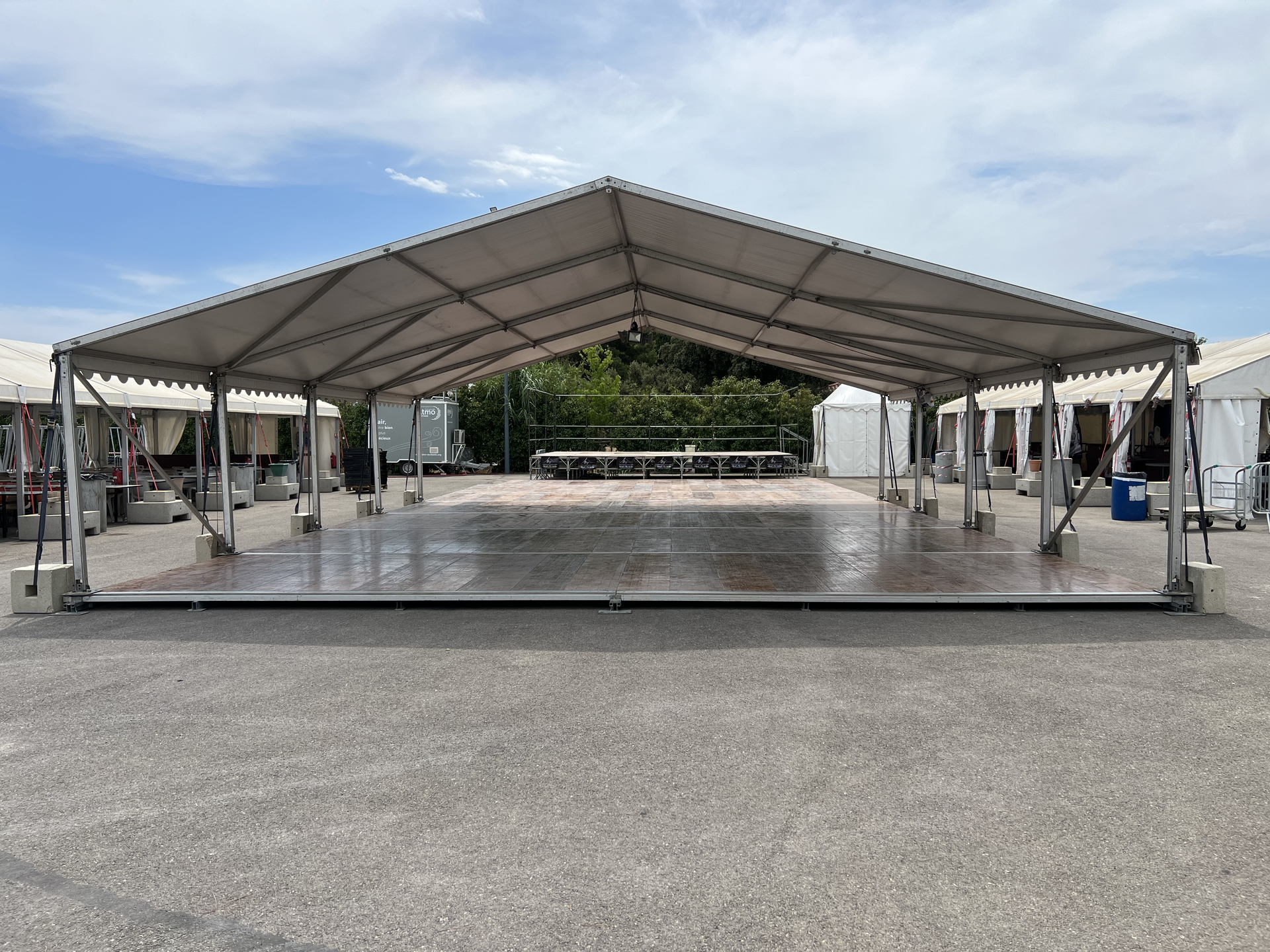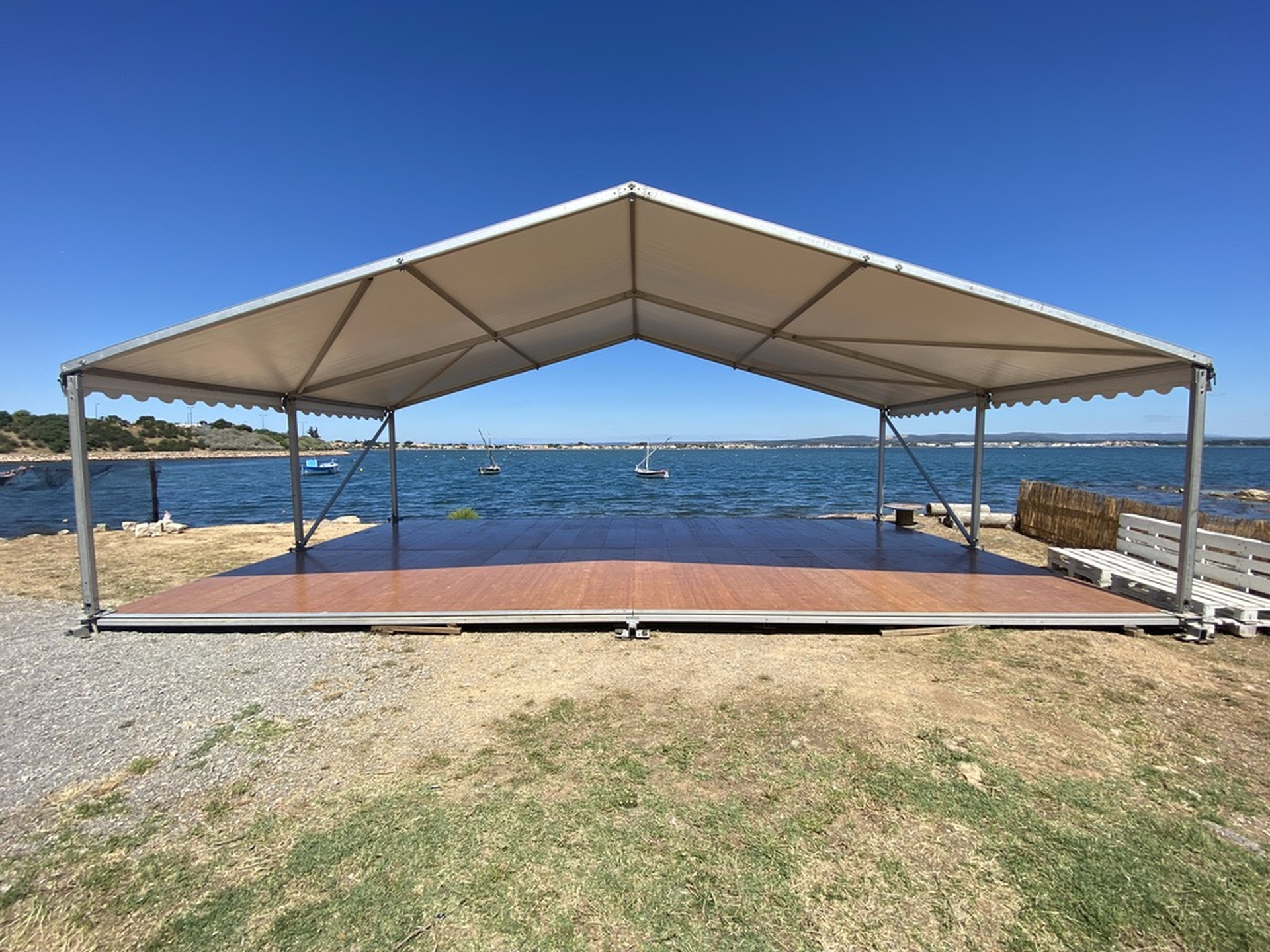 Le chapiteau auvent est uniquement composé d'une toiture, il s'intègre parfaitement à tous types d'événements. Grâce à ses larges ouvertures vers l'extérieur, le auvent favorise la circulation de l'air et vous offre une visibilité dégagée. Le modèle auvent est un choix idéal pour vos événements estivaux, sa toiture assure une protection efficace contre la pluie ou le soleil et vous avez la sensation de profiter pleinement de l'extérieur.
